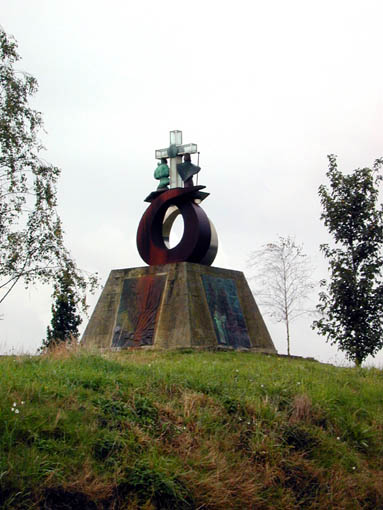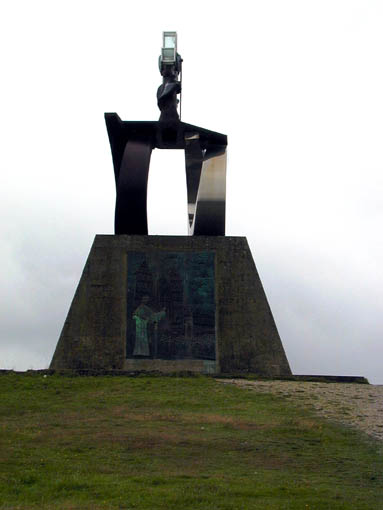 16.36 Uhr: Monte do Gozo. Das große Pilgerdenkmal, schräg und ....